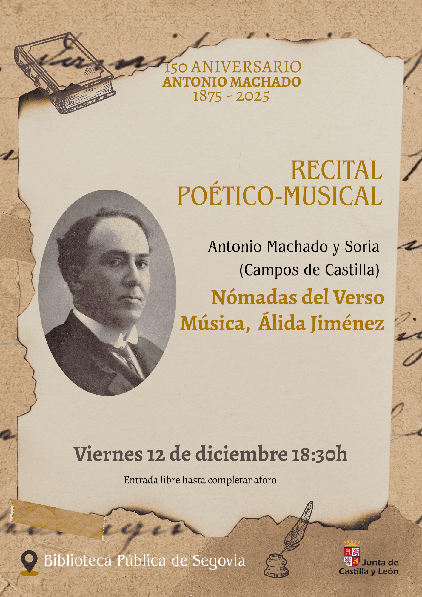 12 Dic 18:30 Antonio Machado y Soria Biblioteca Pública de Segovia Calle de los Procuradores de la Tierra, 6