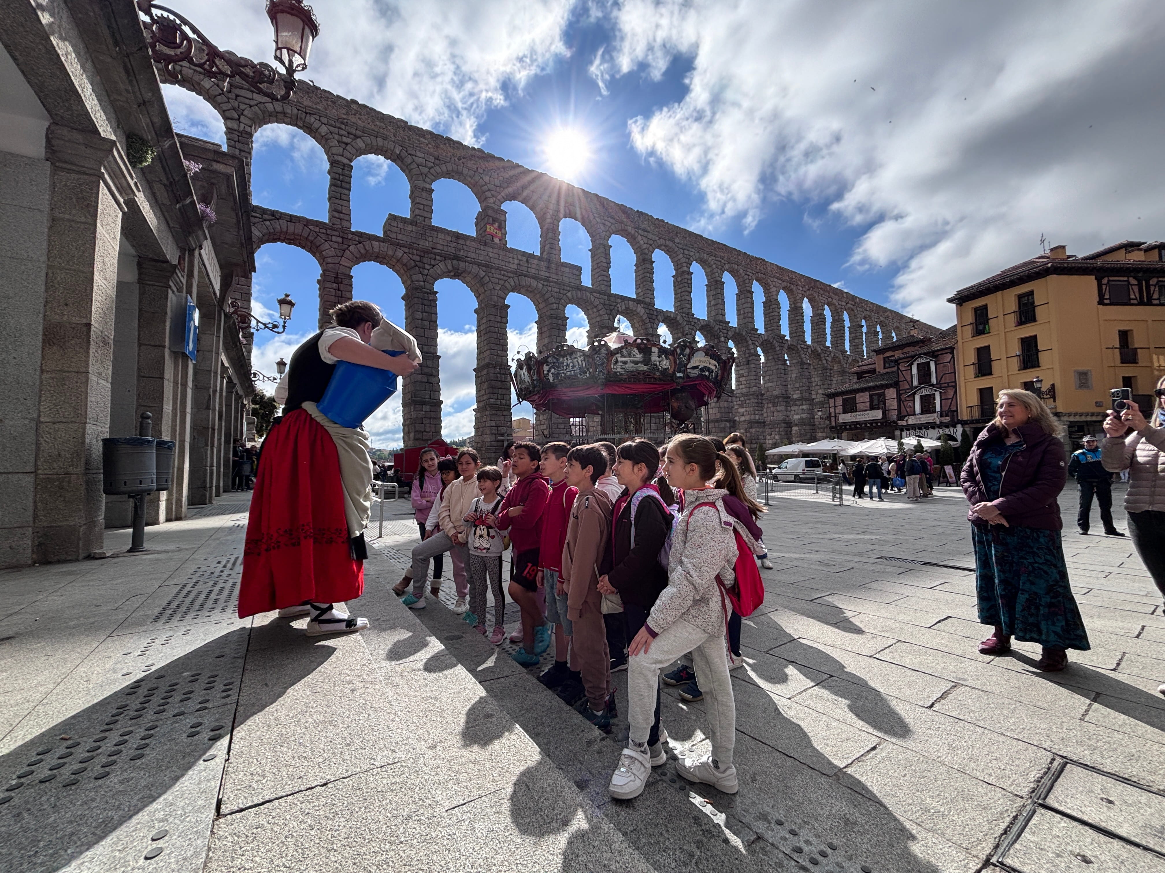 En el camino, nos meteremos en la piel de los antiguos segovianos y nos convertiremos en aguadoras y aguadores por un día para experimentar su labor esencial en la vida de la ciudad. Daremos agua a los sedientos y aprenderemos mediante juegos cómo funcionan los acueductos…
