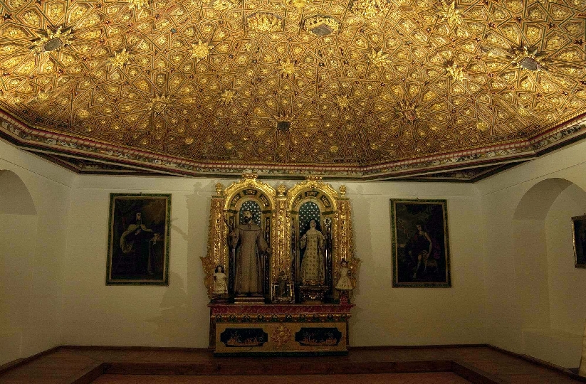 En el interior del templo hay dos obras de arte que por sí solas justifican la visita al convento: un espectacular artesonado mudéjar que cierra la Capilla Mayor y un retablo escultórico único en su género, obra flamenca del siglo XV que narra, con profusión de escenas, la Pasión de Jesús.