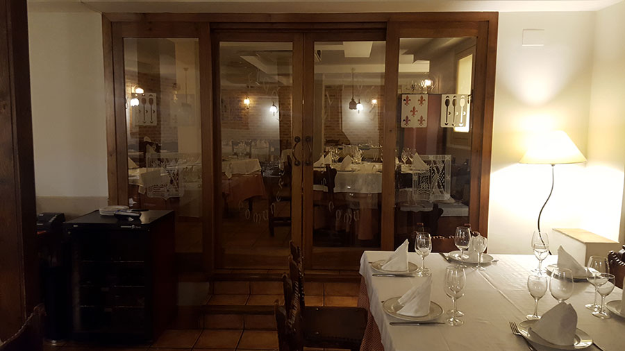 Bajando unas escaleras se encuentra el salón-restaurante, especializado, como no podía ser de otra forma en esta tierra, en carnes rojas, cochinillo y chuletas de lechal. De los entrantes, la mejor opción es pedir una rueda de ibéricos: jamón, chorizo, lomo y queso, para hacer boca.
